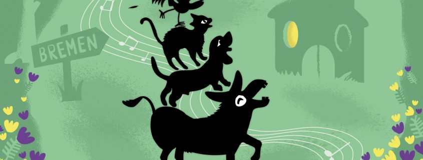 Wanneer de ezel ontslagen wordt door zijn baas besluit hij de benen te nemen om in Bremen stadsmuzikant te worden. Onderweg komt hij de hond, kat en haan tegen. Samen besluiten ze hun muzikale krachten te bundelen. Maar de weg naar Bremen is lang en brengt naast veel ontmoetingen met andere dieren ook gevaarlijke rovers en spannende avonturen met zich mee. Als dat maar goed afloopt…